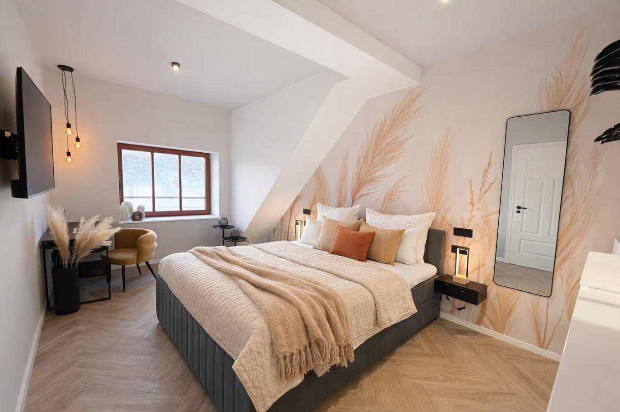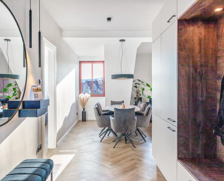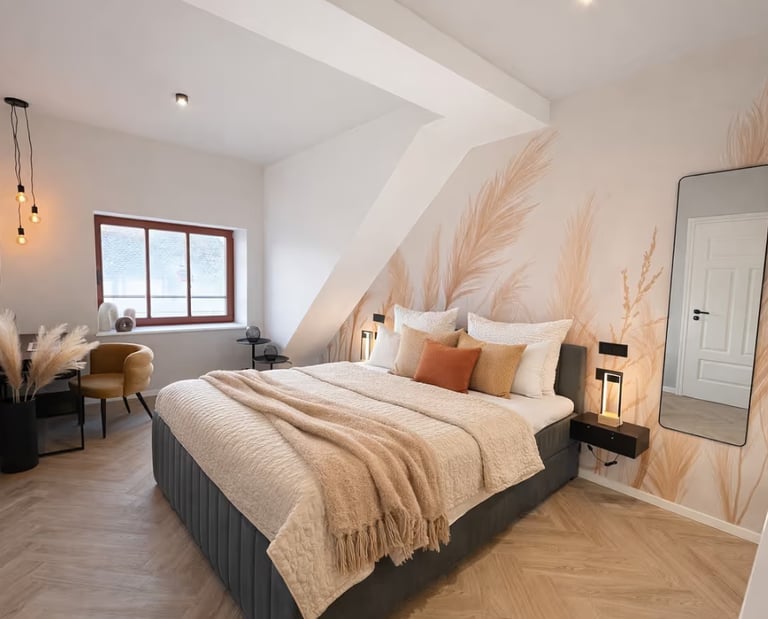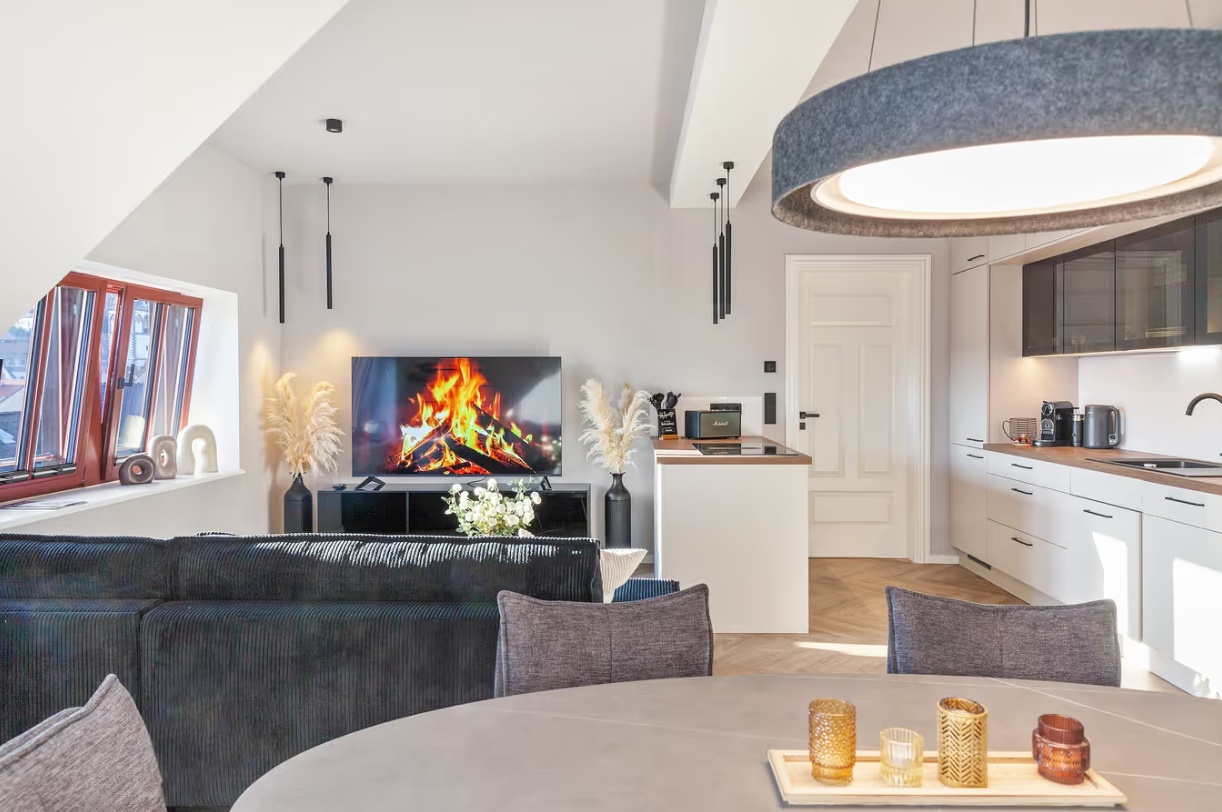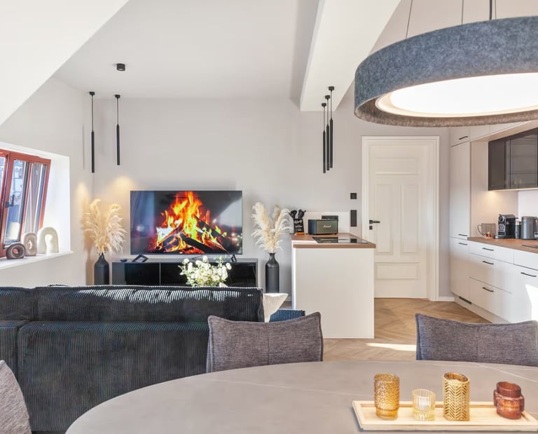 Nachfolgend finden Sie eine Beschreibung einer schlichten und minimalistischen Dachgeschoßwohnung, die perfekt für ein Wochenende oder sogar für ein ganzes Jahr geeignet ist. Diese gemütliche Unterkunft bietet einen hohen Wohnkomfort und lädt zum Entspannen ein. Die klaren Linien und die einfache Einrichtung schaffen eine angenehme Atmosphäre, in der man sich sofort wohlfühlen kann. Umgeben von viel Tageslicht und mit einem Blick auf die Natur, ist es der ideale Rückzugsort für alle, die eine Auszeit suchen.